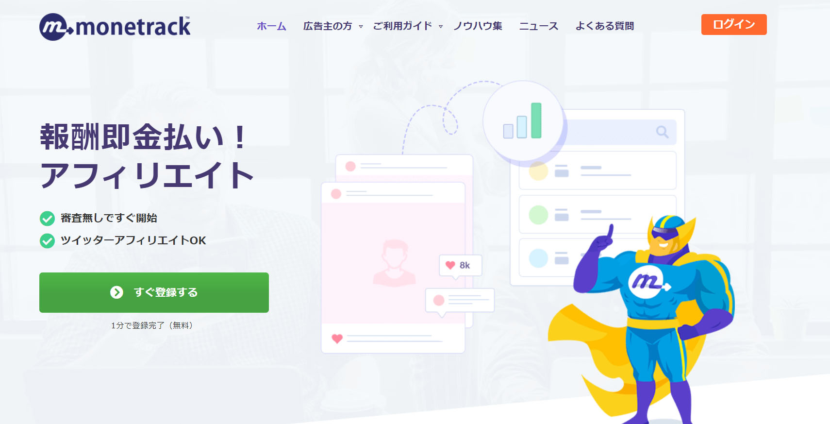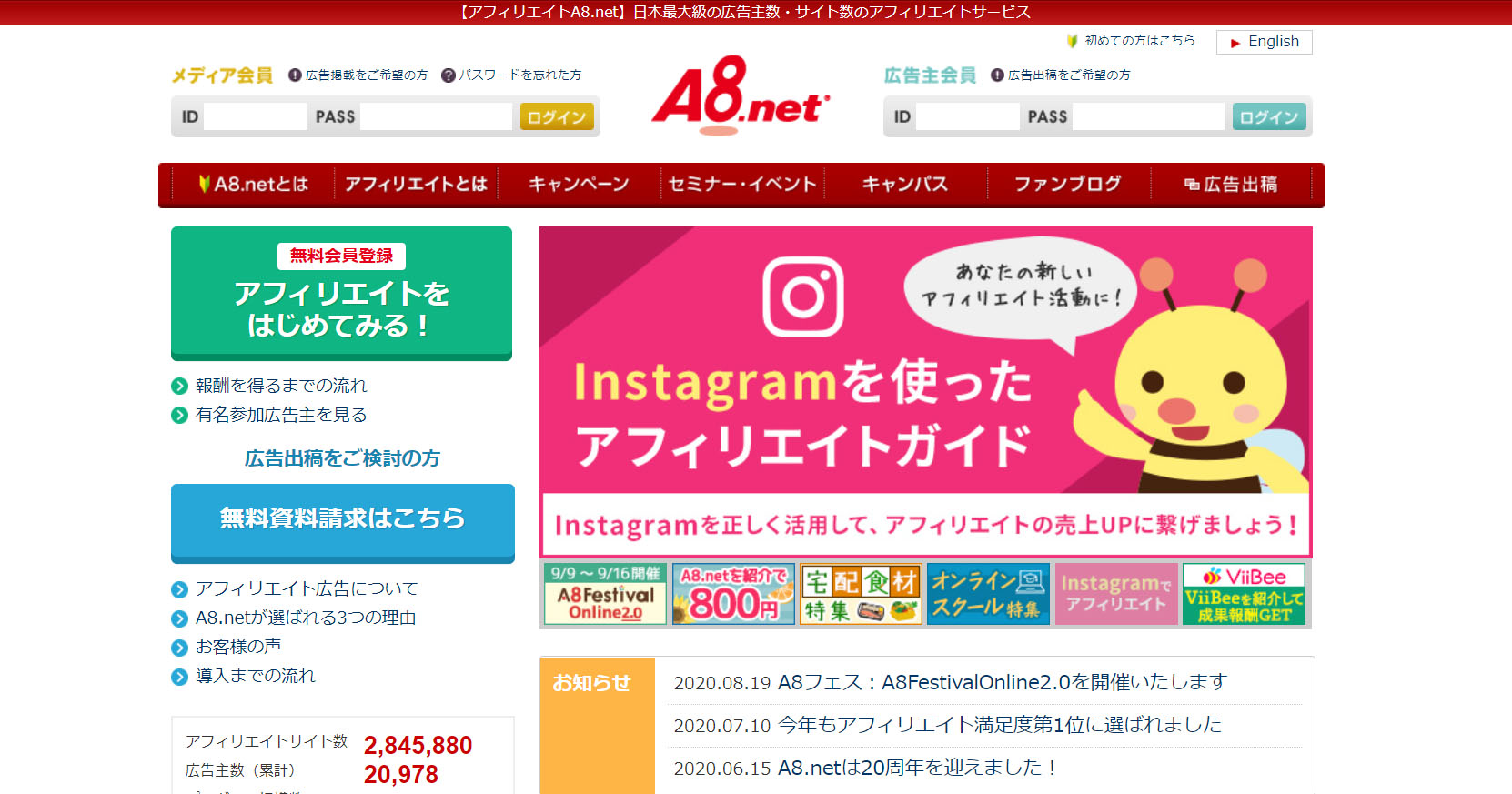 A8.netなどのほぼ全員が登録する大手と違い、登録者が少なくマイナーなASPです。
