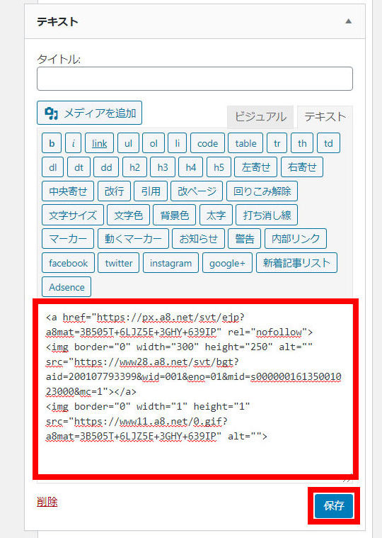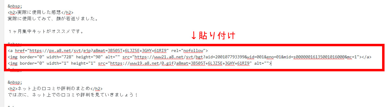 ASPに登録をしたら、サイト内に広告リンクを挿入していきます。