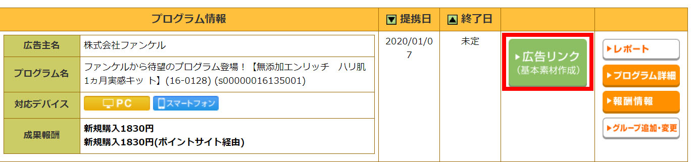 申請をして承認が下りたら、広告のリンクが作成できます。
