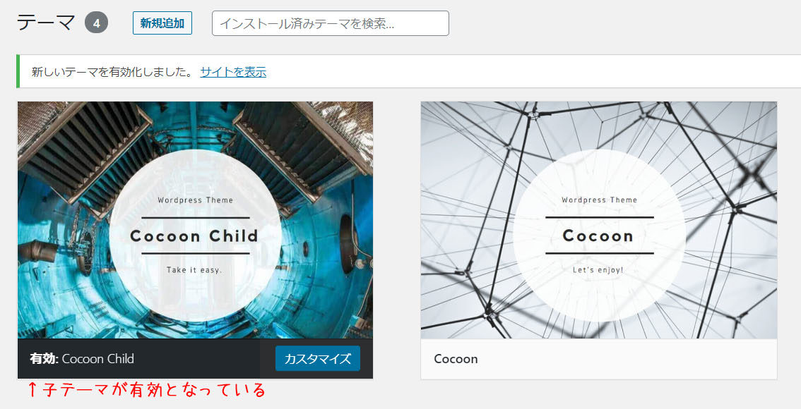 インストールした「子テーマ」を有効化させる