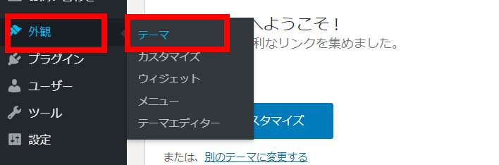 ① WordPress管理画面→「外観」→「テーマ」