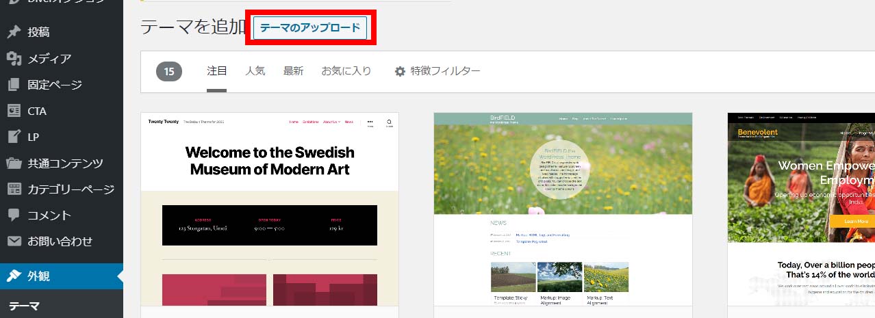 テーマをWordPressへインストール