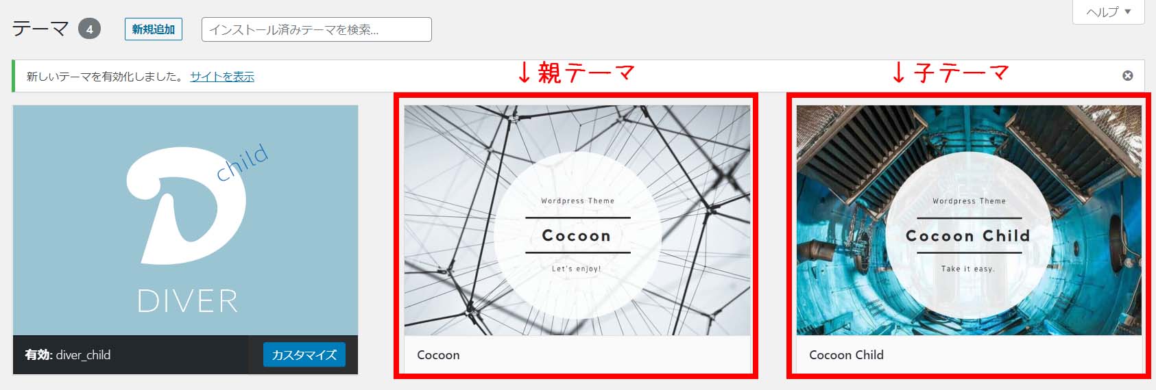 例)Cocoonの親テーマ・子テーマ