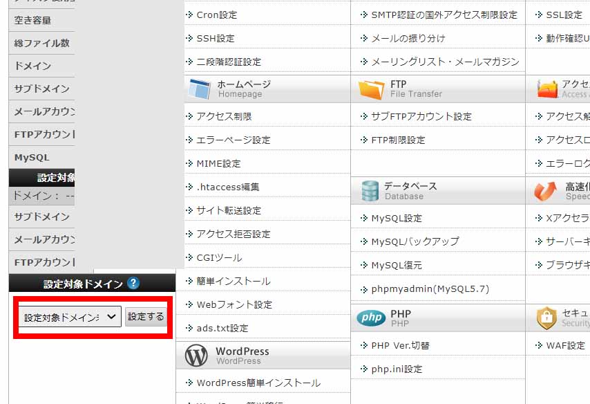 ② 左下の「認定対象ドメイン」で対象ドメインを選択して「設定する」