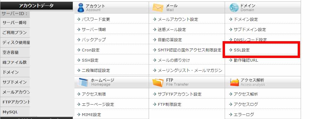 設定が反映されている事を確認して、手動でSSL設定をしよう