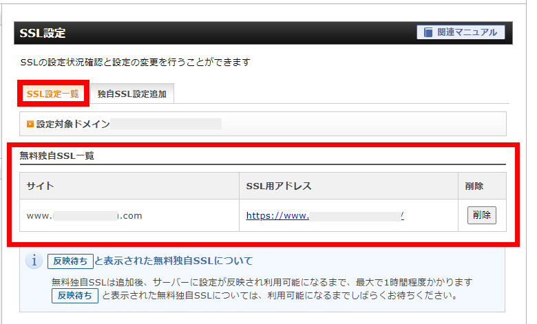 ④ SSL設定から反映されるまで最大1時間程度かかる