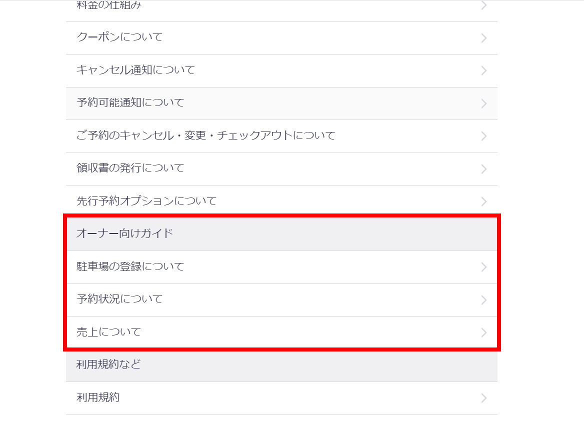 ②使い方ガイドが表示されるので下にスクロール→「オーナー向けガイド」