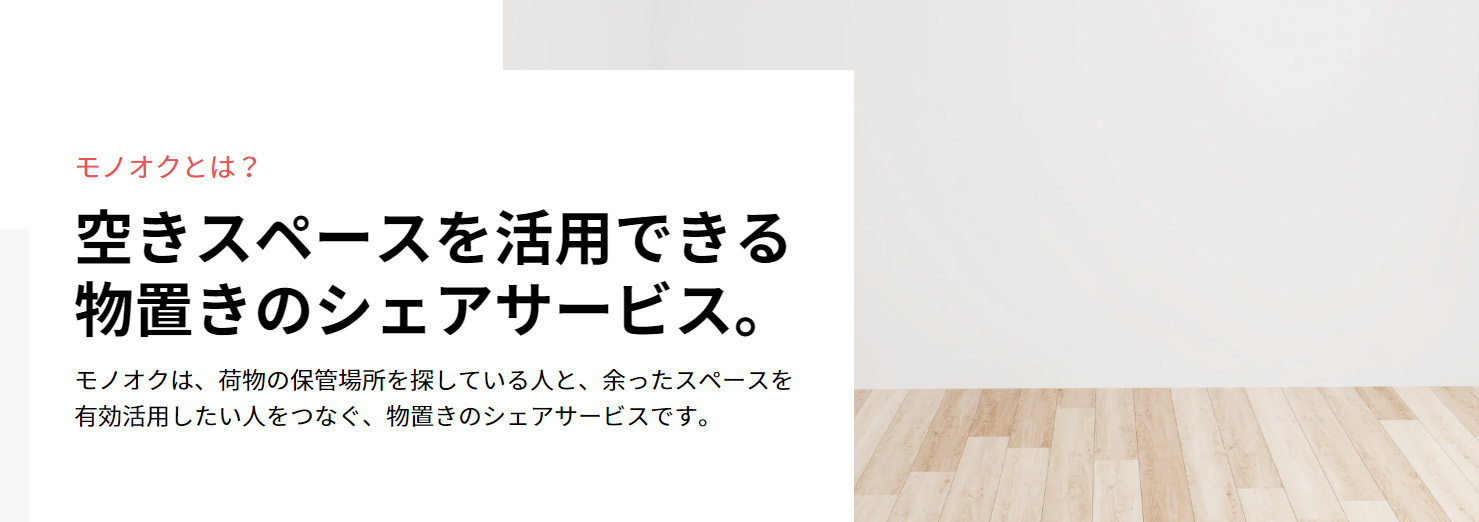 モノオクとは、空きスペースを物置きとして貸し出せるシェアサービス。