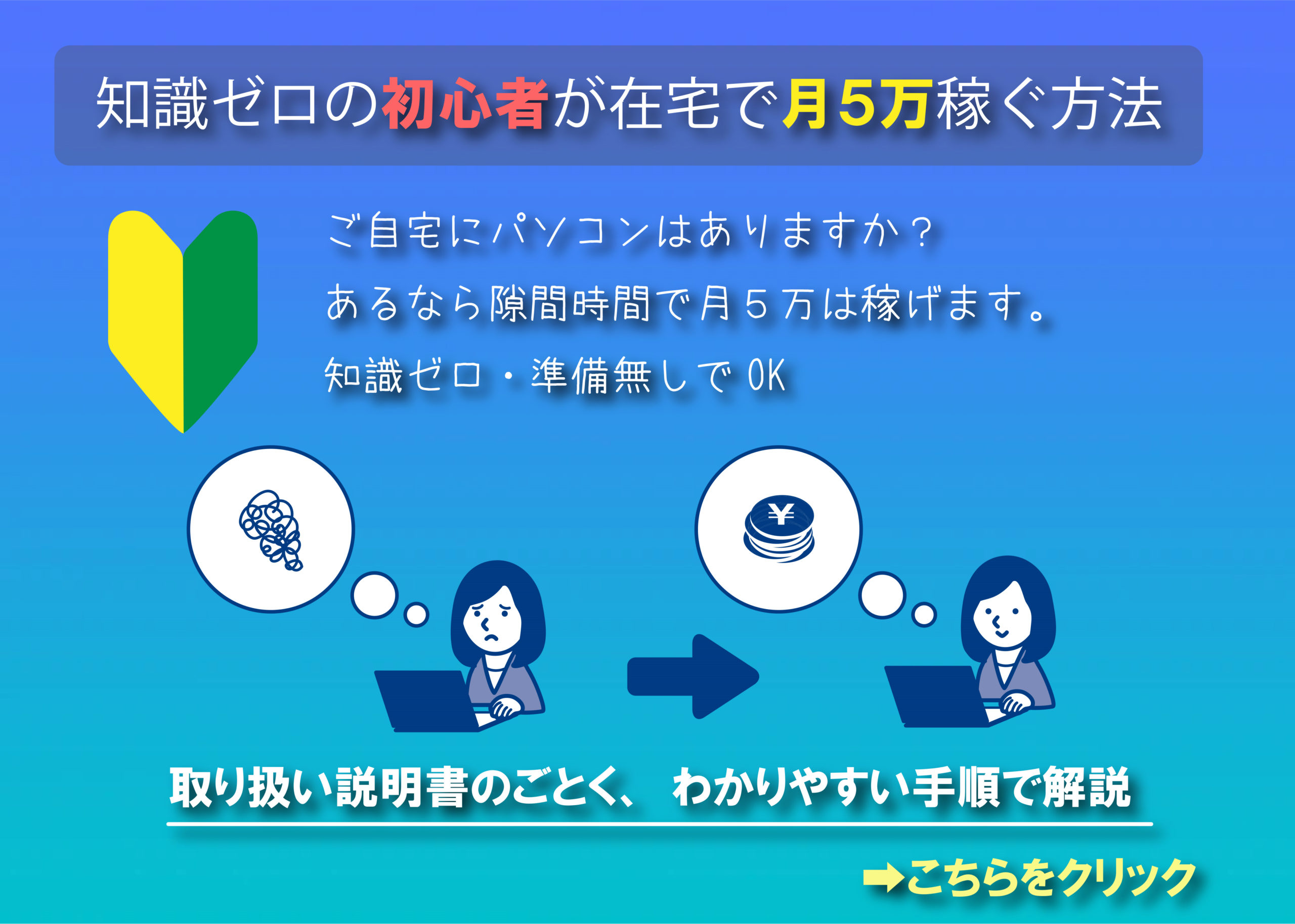 特別な環境は必要ありません。「PCやスマホを持っている事」この条件を満たせば、誰でも簡単にはじめられます。